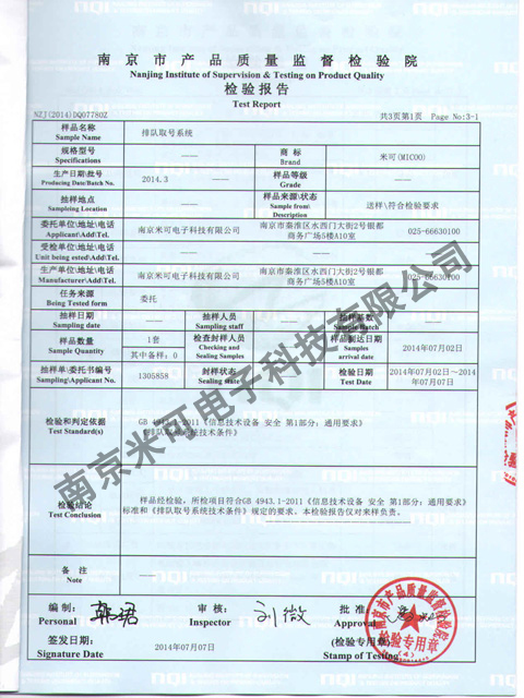 排队叫号系统检验报告
