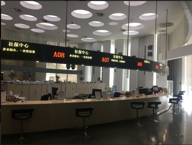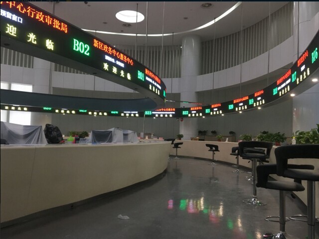 无锡新吴区政务服务中心排队叫号系统、LED显示屏、触摸查询一体机由米可制作